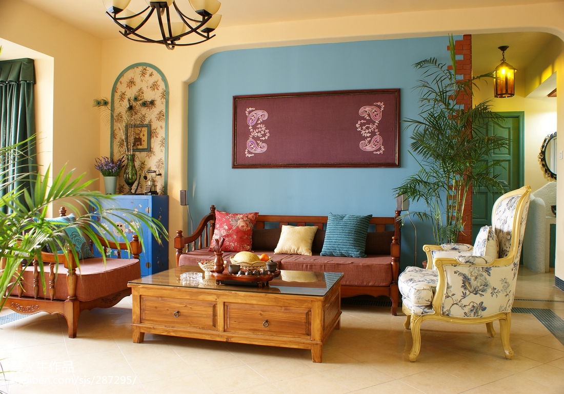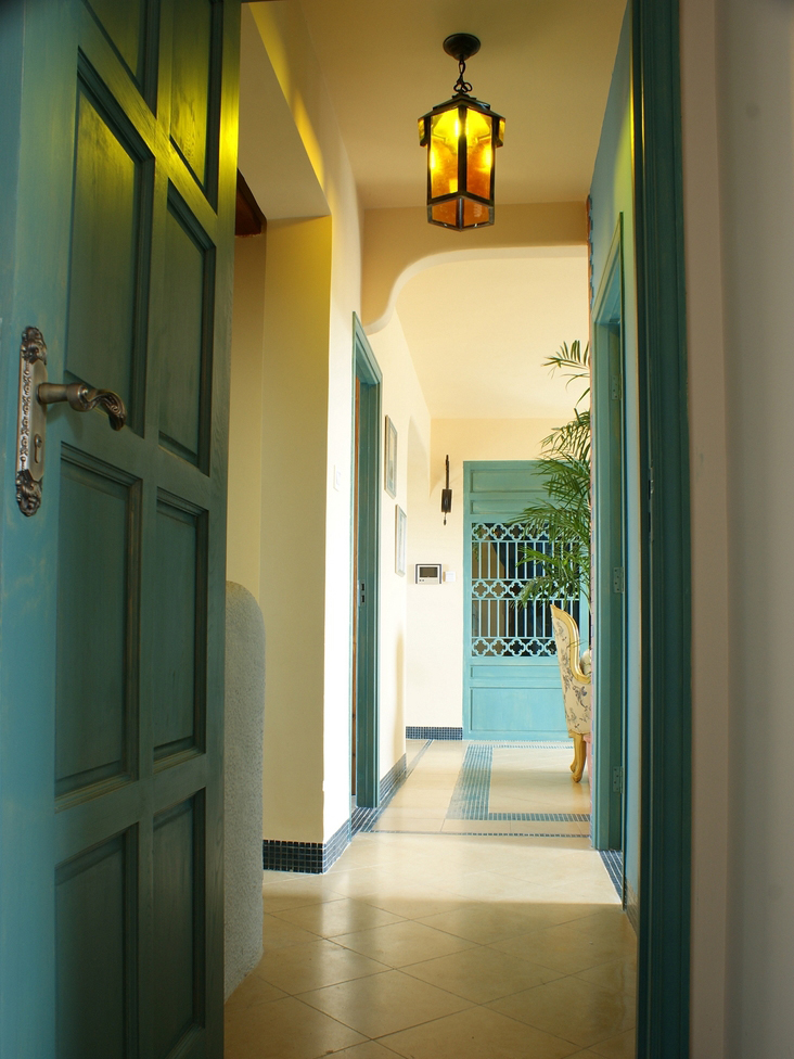 LI先生則喜歡喝啤酒,這也是我從業以來遇到喝啤酒次數最多的業主之一。因為在建材市場是選材不是選馬,所以始終沒敢喝到混淆 “馬賽克”和“賽馬”的境界,幸好喝的不是二鍋頭,若用啤酒的量來挑戰我的二鍋頭酒量,喝完后肯定要變成功夫熊貓。 每個業主都有一串家的鑰匙,通向家門的同時也通向心靈深處渴望到達的地方。當主臥方案確定后, XI小姐拍著LI先生的肩膀說:“這下你就是莊園主了。” 于是衍生了孔雀莊園的主題,精心打造了這串《通往孔雀莊園的鑰匙》