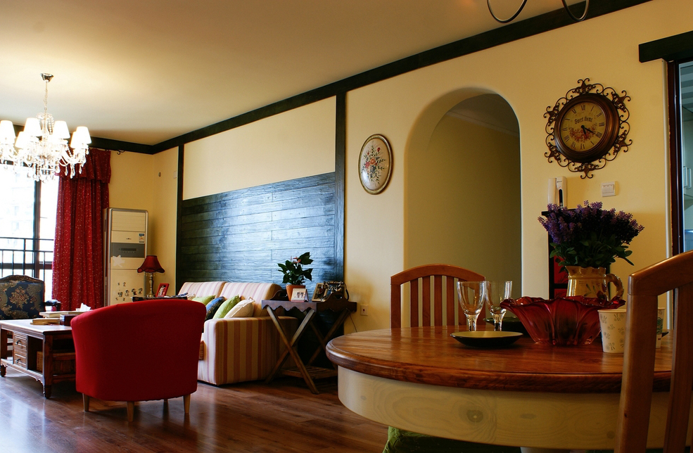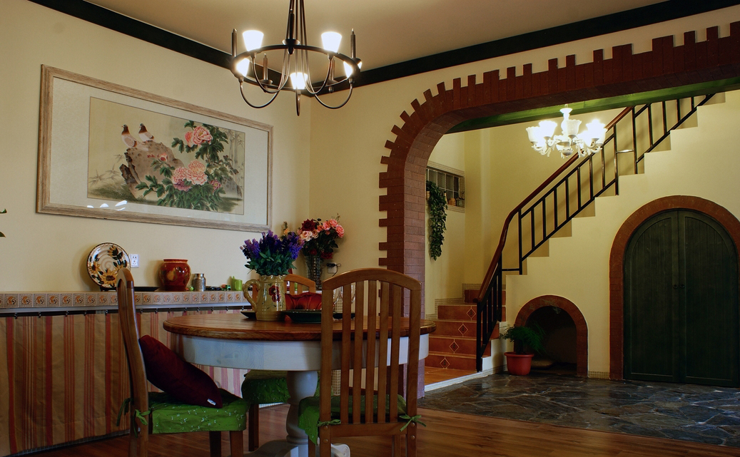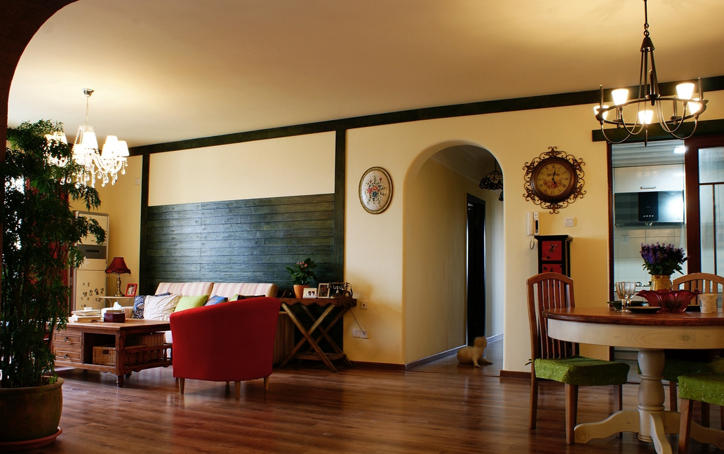 “北緯23.5度、南緯23.5度之間,分布著綠色宮殿般的熱帶雨林。從散布巖石小山的低地平原,到溪流縱橫的高原峽谷,參天的大樹、纏繞的藤蘿、繁茂的花草...多樣的地貌和植物,交織出形態(tài)萬千的雨林景觀...” “熱帶雨林季風(fēng)氣候下,磚紅壤以顏色類似燒制的紅磚而得名。”整個設(shè)計思路,由熱帶雨林的這兩個特征全面展開...... 業(yè)主愛蜜蓮熱愛大自然,花草,書籍,電影,音樂...“軟裝飾設(shè)計環(huán)節(jié)”中的每樣配飾都極為重視和熱心(這是形成一個完整設(shè)計作品的關(guān)鍵環(huán)節(jié))。步入愛蜜蓮的家,像進入一片熱帶雨林,大朵大朵花兒凝成了“熱情”的窗簾、沙發(fā)和臺布,精心挑選的植物和墨綠的原木裝飾,流動著綠意盎然的自然主義休閑精神......